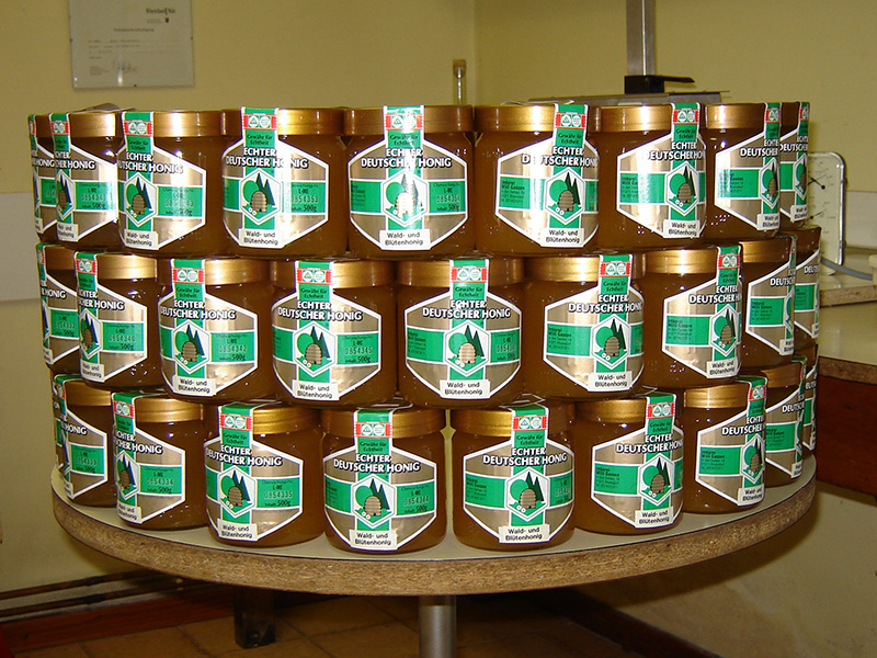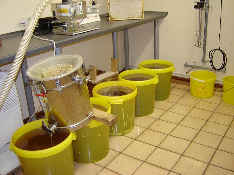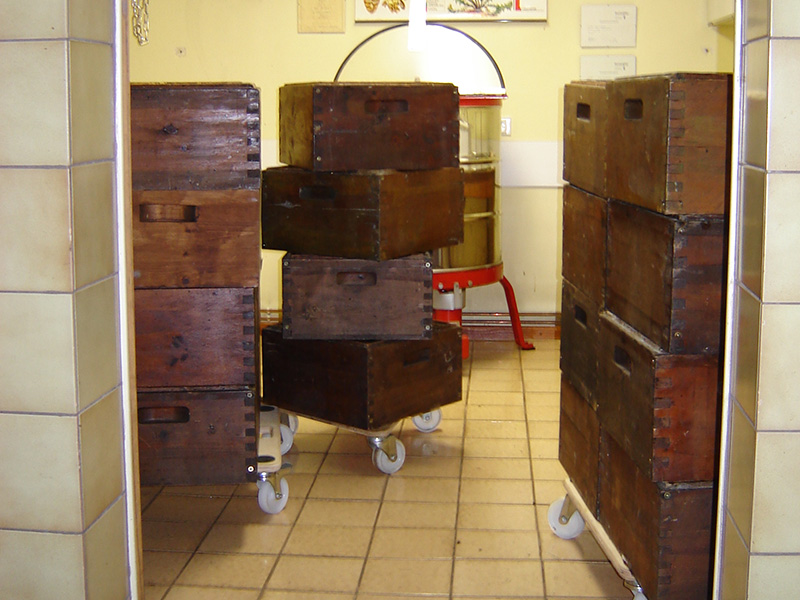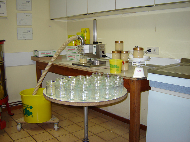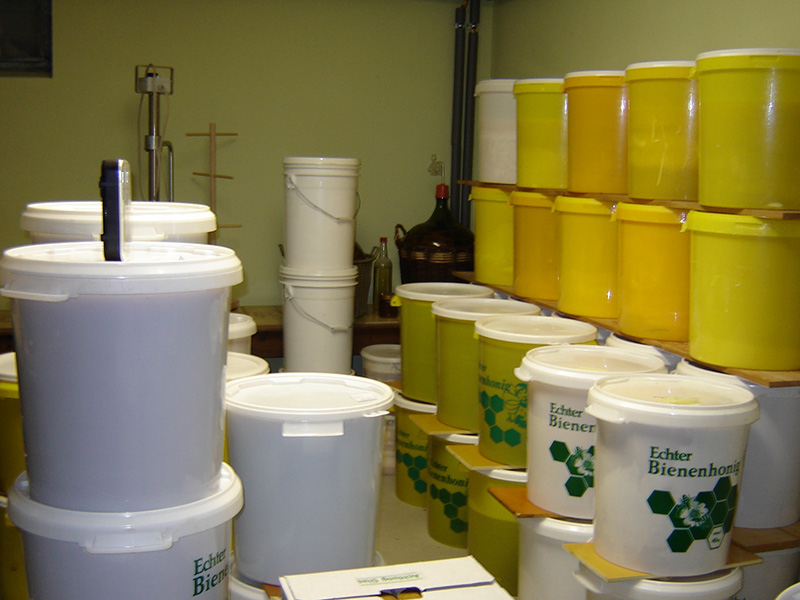 Bis zum Abfüllen in Gläser kommen die Eimer ins Lager.